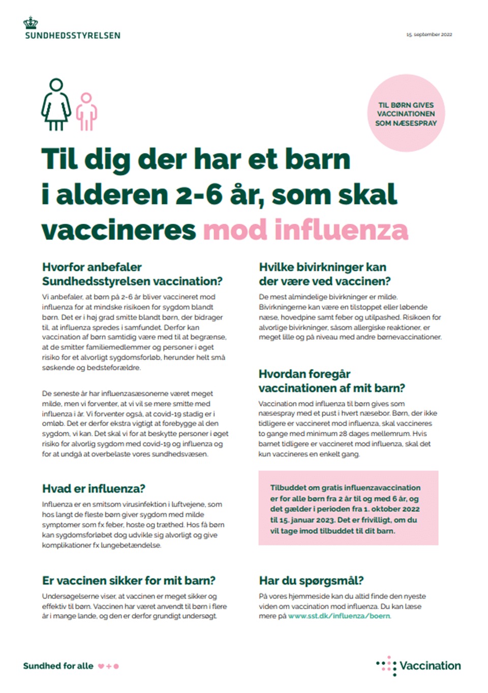 Pjece til dig, der har et barn i alderen 2-6 år, som skal vaccineres mod influenza.