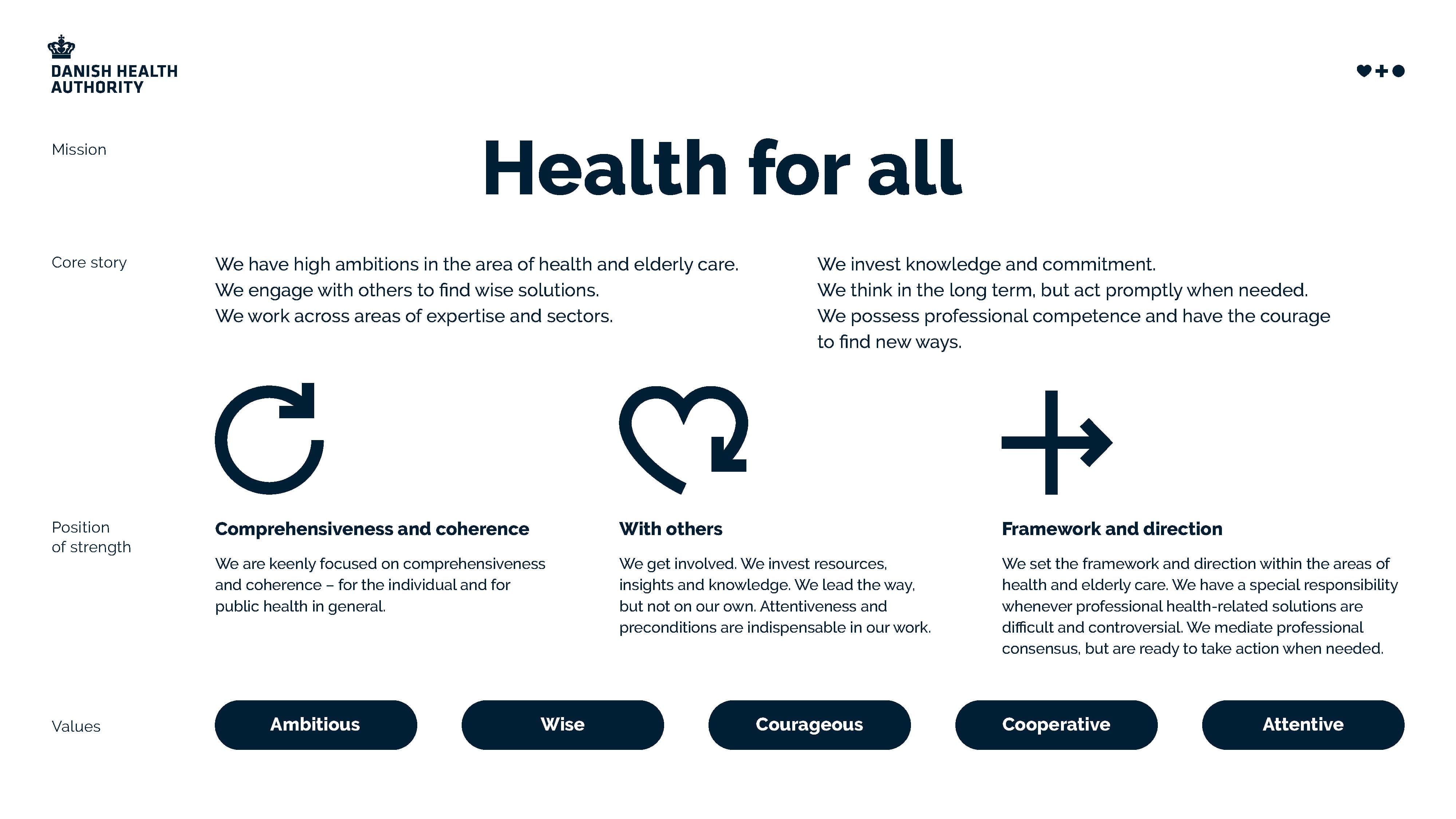 - We set the framework and direction within the areas of health and elderly care.