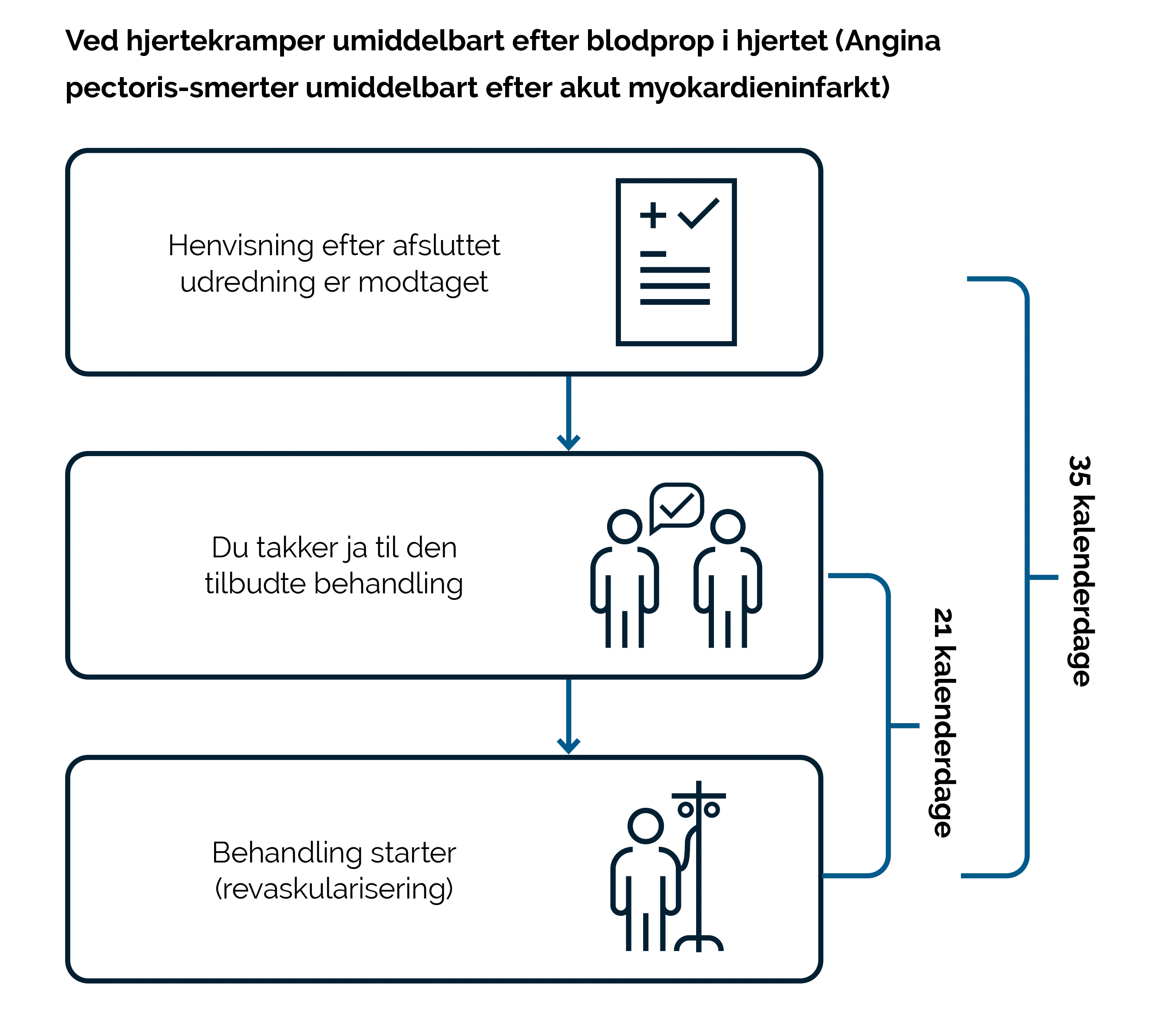 Grafisk oversigt over maksimale ventetider: Angina pectoris-smerter umiddelbart efter akut myokardieinfarkt Opdateret 30 MAJ 2024