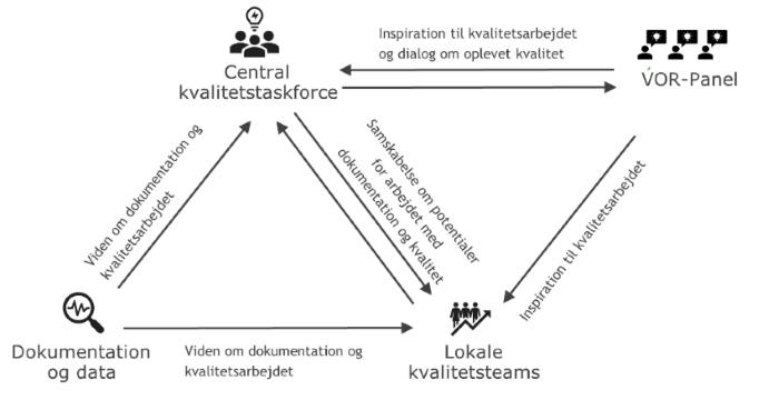 De lokale kvalitetsteams er tværfagligt sammensatte grupper, der skal arbejde med lokal kvalitetsudvikling og forankring i vores 7 distrikter. De arbejder inden for rammer fastsat af Den Centrale Kvalitetstaskforce. Læs mere om de lokale kvalitetsteams her.