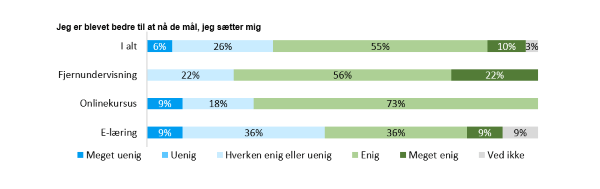 - 67 procent af kursisterne på fjernundervisningen angiver, at det er en fordel, at kurset er virtuelt, ligesom flere kursister fremhæver, at de ikke ville kunne deltage i indsatsen, såfremt den var fysisk.