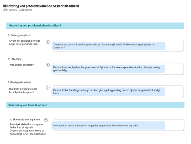 Den tryghedsskabende handlingsanvisning er et digitalt redskab til personalet, som indeholder systematisk observation af borgerens adfærd, for at personalet dermed bedre kan forebygge og håndtere affektudbrud hos den enkelte borger.