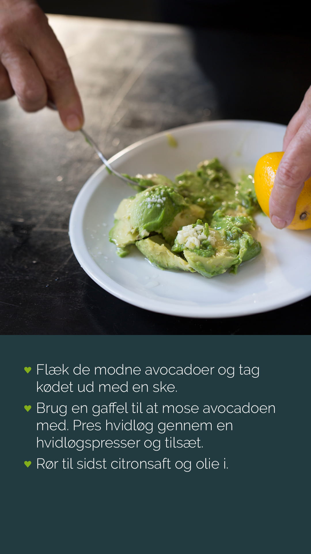 Her kan du se, hvordan du laver avocadomos (guacamole).