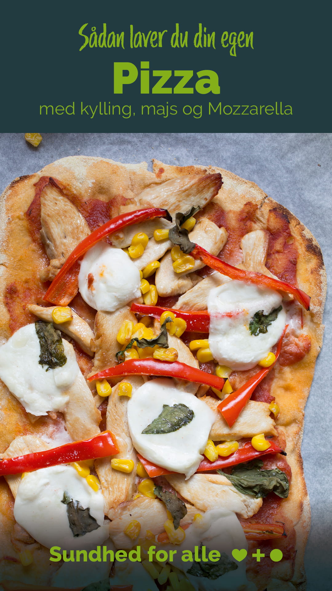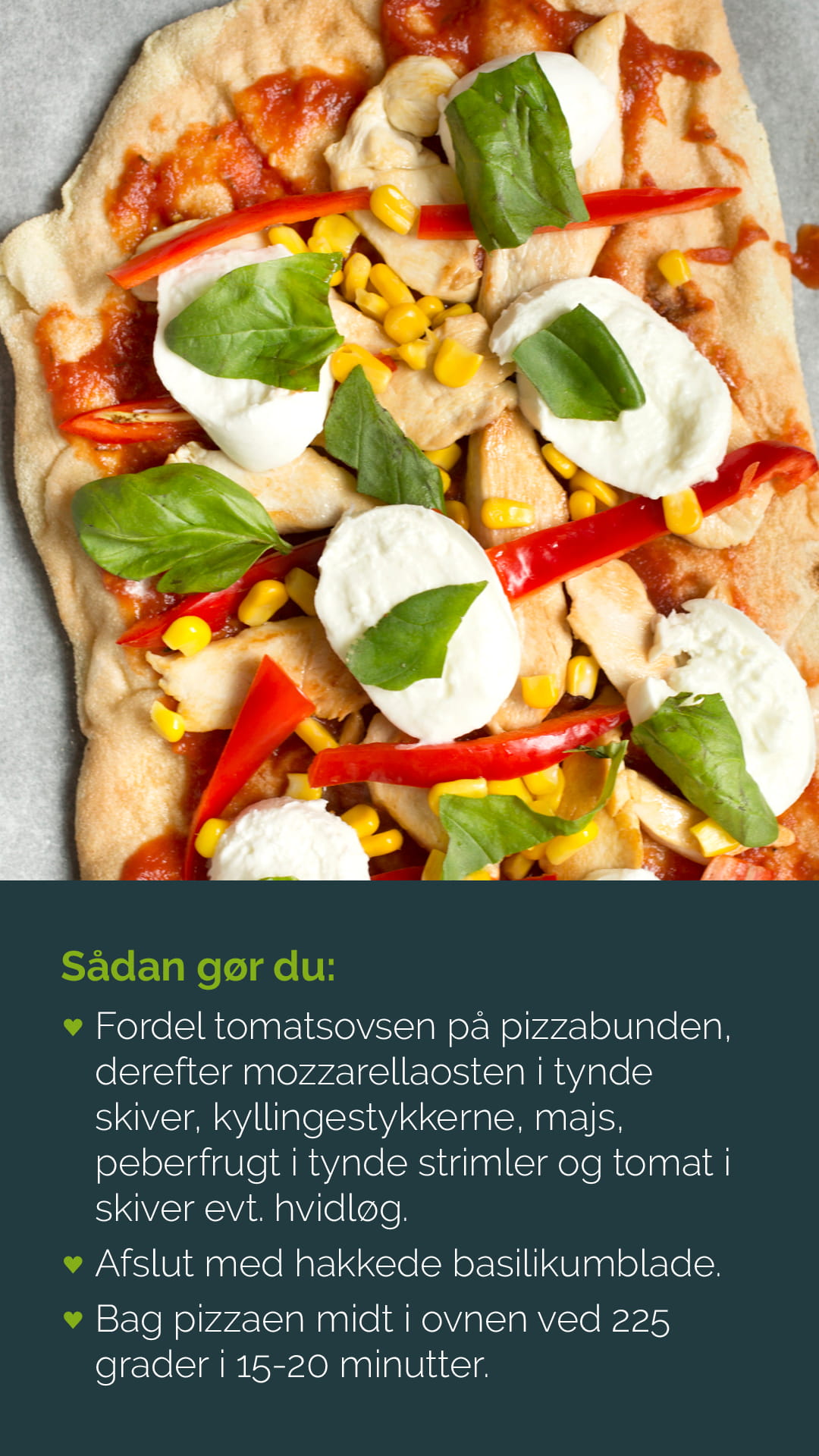 Opskriftskort: Pizza med kylling, majs og mozzarella