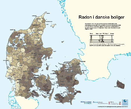 Radon i danske boliger - kortlægning af lands- amts- og kommuneværdier