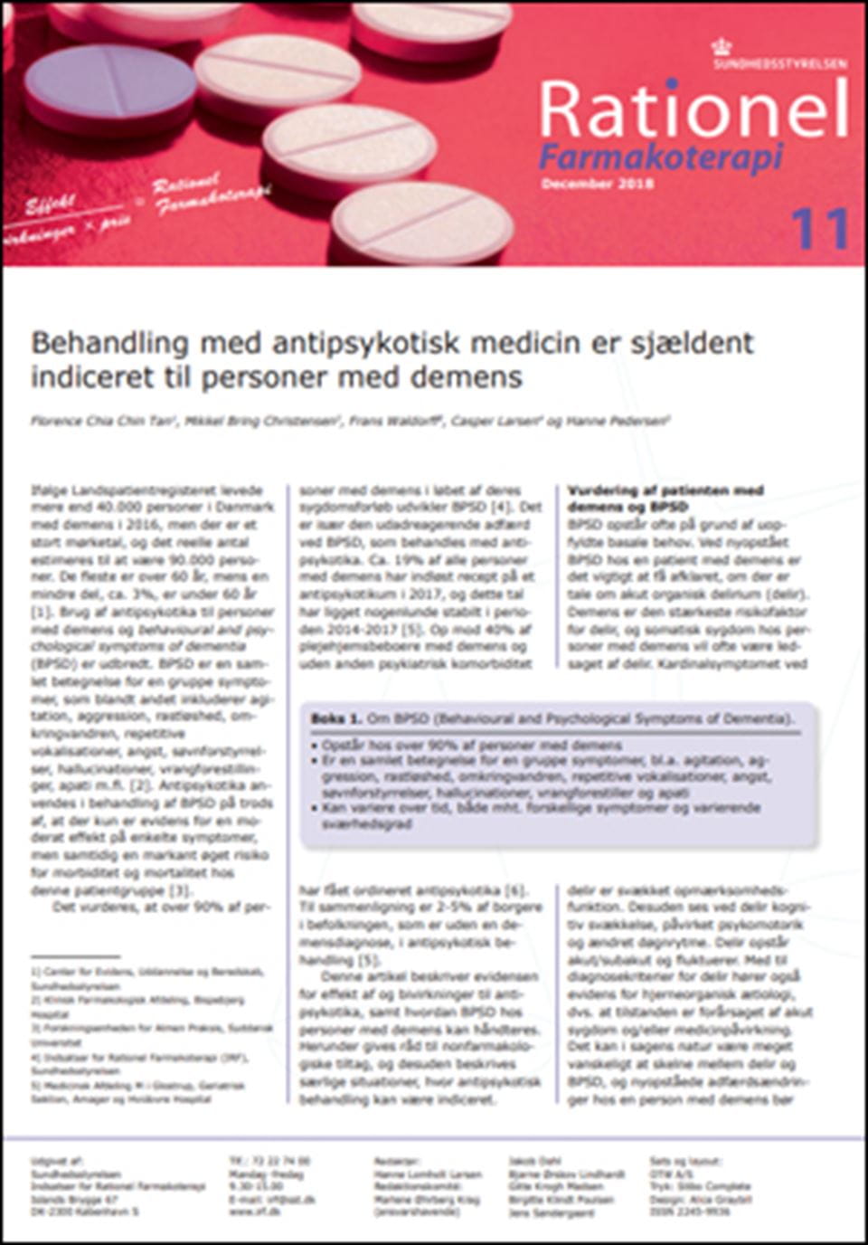Månedsbladet indeholder artiklerne 'Behandling med antipsykotisk medicin er sjældent indiceret til personer med demens' og 'Behandling af svampeinfektioner udløst af behandling med SGLT-2-hæmmere'