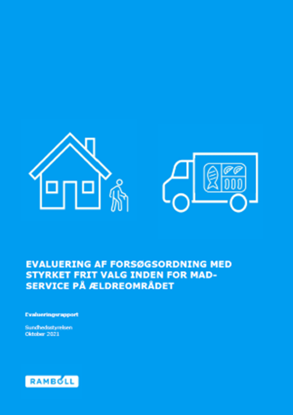 Sundhedsstyrelsen har fået udarbejdet en evaluering om styrket frit valg inden for madservice. Formålet med evalueringen er at indsamle viden og erfaringer fra de to forsøgskommuner, Varde og Helsingør, der deltog i forsøgsordningen fra maj 2019 - juni 2021. I evalueringen kan man læse om forsøgskommunernes erfaringer og borgernes oplevelse af fritvalgsbeviser.