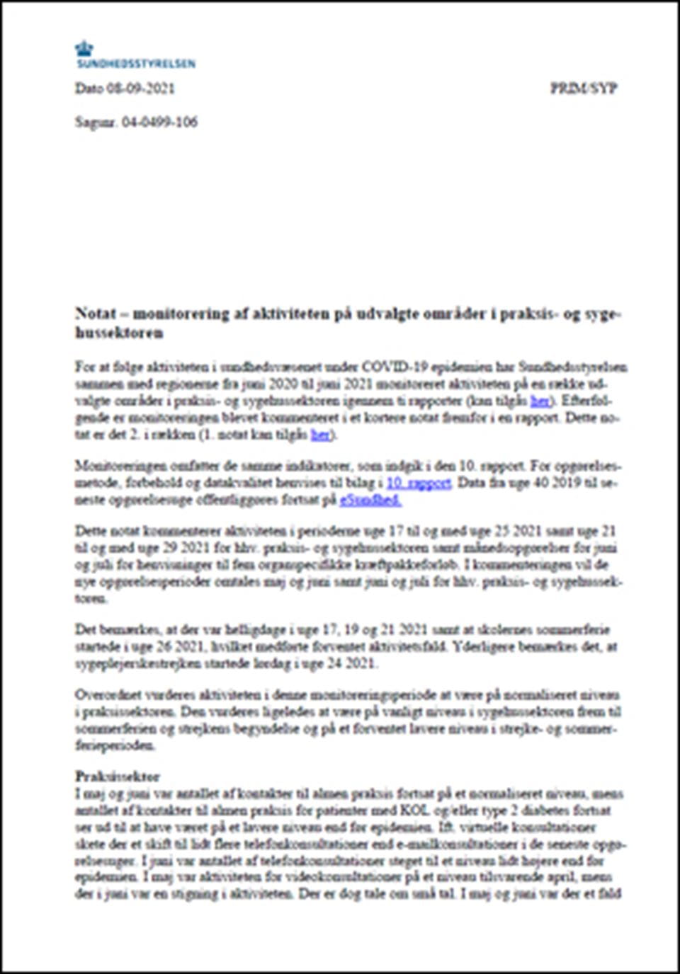 Sundhedsstyrelsen følger aktiviteten i sundhedsvæsenet under COVID-19 epidemien.
